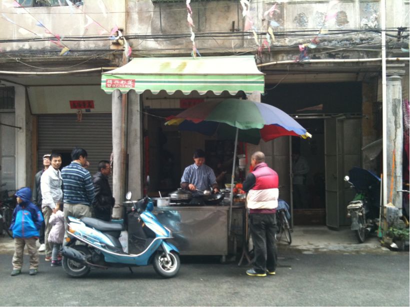 近所の[米果]汁屋さんへ行く途中。上に下がっているのはお肉です。
