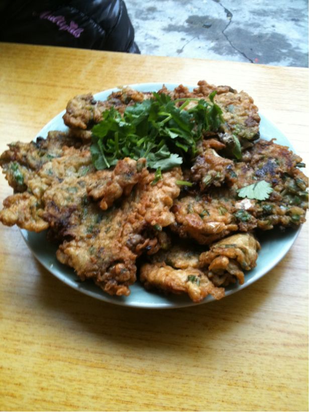 今、牡蠣のお焼き「蚝烙」を作ってもらっています。
