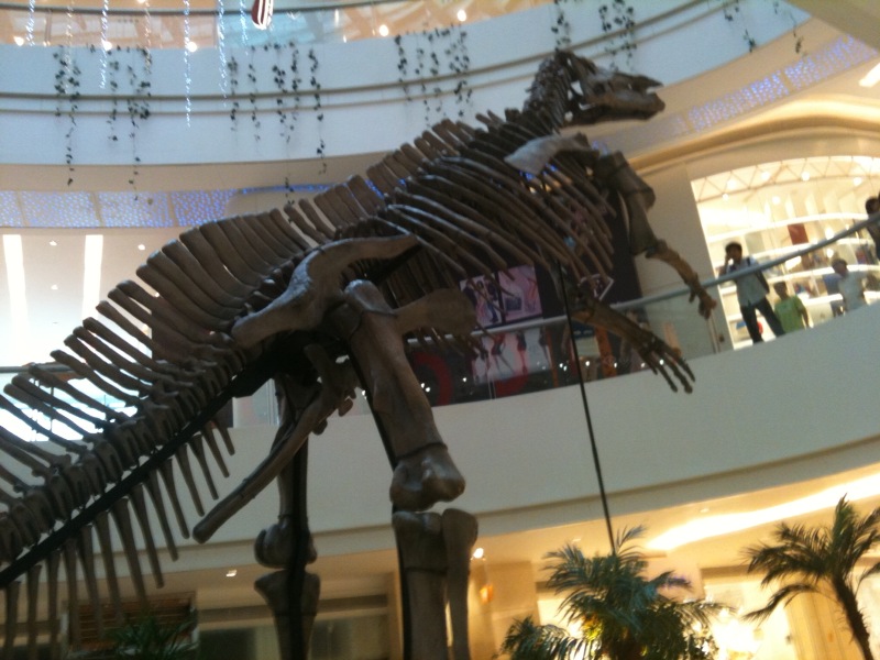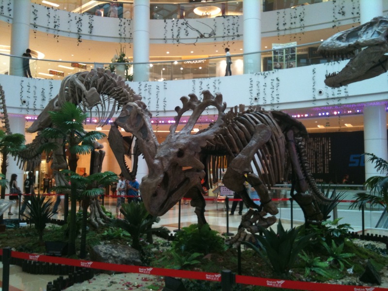 こちらは四川省自貢からのものです。一地方都市のショッピングモールにも貸し出せるなんて、どれだけ中国には恐竜の化石があるのでしょうか。(やっぱりレプリカ?)