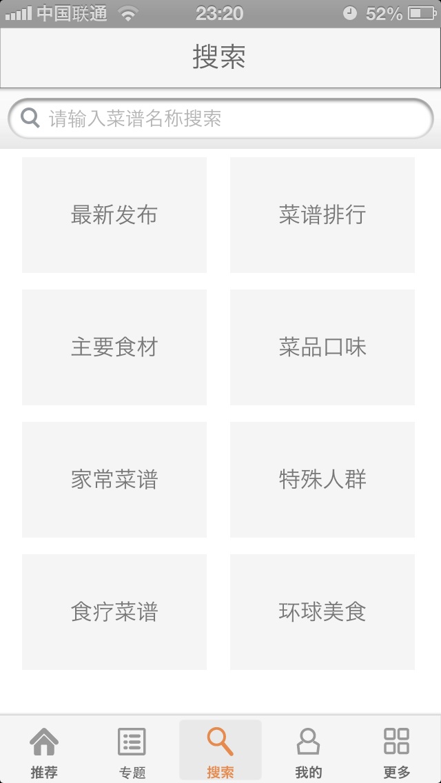 新着レシピ、人気レシピ、食材、味付け、家庭料理、薬膳、世界の料理などから選んでもよし。