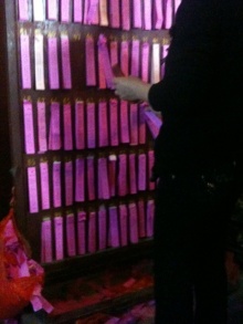 正月4日に行ったのですが、それでもお参りの人でいっぱい。真ん中のお供え物をおくテーブルにはあふれんばかりの物が。後日、お義姉さんからとっても御利益のあるお廟なのだと聞きましたが、納得の人出でした。