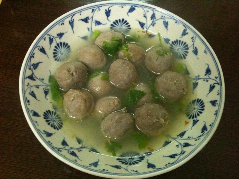最後にニンニクのみじん切りをじっくり揚げたもの(肉団子を買うと付いてくることも)を散らして、スープに塩味をつけて出来上がり。肉団子にも塩味がきいているので、ちょっと薄味の方がいいかもしれません。