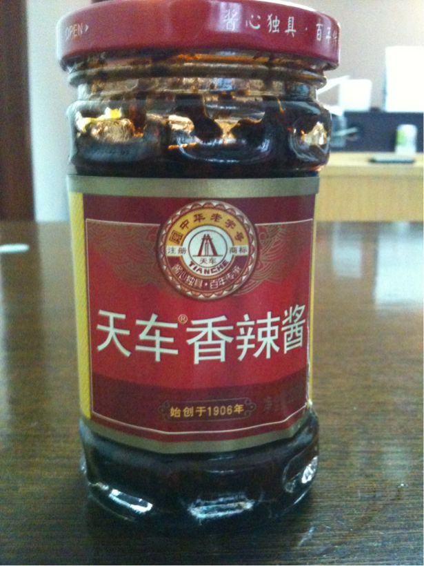 四川省自貢産。(産地は重要。同じ「辣椒醤」でも産地によって香辛料の配合が全然違うので。)色もあのお店にあったのと同じような感じ。豆板醤も入っているみたいだし、近い味なのではないかと。