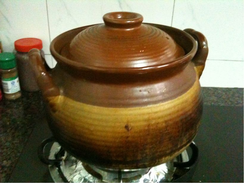 土鍋です。もしこういう鍋を買ったら、一日バケツの水に浸けたあと、水分を良く拭いて鍋の底や下の方に油を塗っておくと割れずに長持ちします。