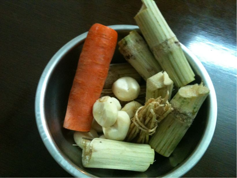 うちでは豚バラと煮込んで魚醤で味付けした物をたまにつくるのですが、どの場合も、奇麗に洗ってから水にしばらく浸しておき、熱湯でしばらく茹でて使う・・・でいいと思います。