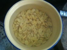 あと、銀杏の甘露煮の下準備をしました。茹でた銀杏を半分に切り、一日以上水に晒してアクをぬいておきます。