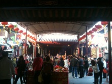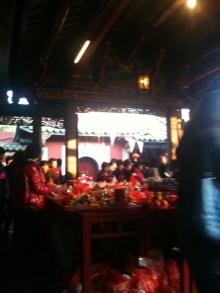 正月4日に行ったのですが、それでもお参りの人でいっぱい。真ん中のお供え物をおくテーブルにはあふれんばかりの物が。後日、お義姉さんからとっても御利益のあるお廟なのだと聞きましたが、納得の人出でした。