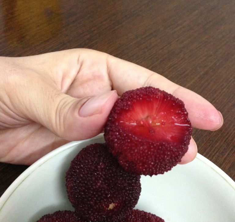 あまりにもうるさいので居間に出て行くと、子供達に「楊梅」を食べさせたくて一生懸命アピールしているのでした。