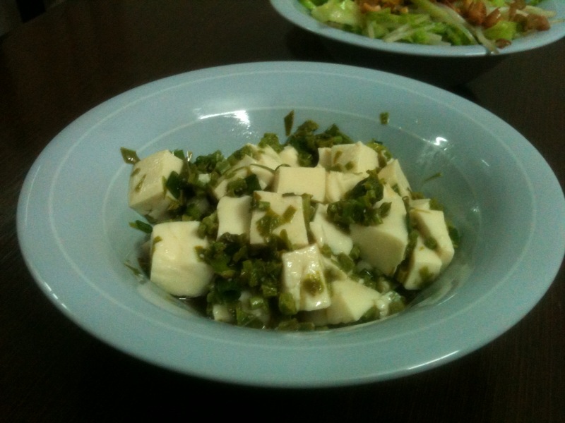 ピータンも加えて和えるなんてのも有りで、本当はやりたかったのですが、家にあったのは古かったので断念。少量の葱と、青椒も入れました。