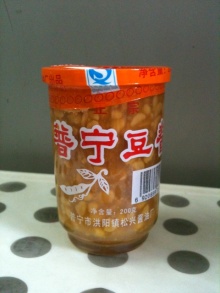 普宁豆酱は市場の食材店で手にはいると思います。あと、潮州牛肉丸を売っている店なんかにもおいてあるかも知れません。