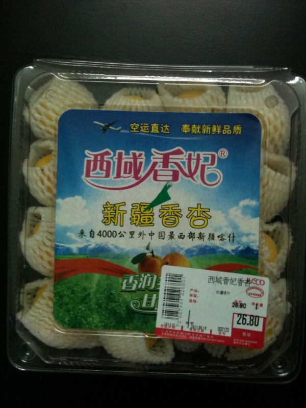 今回はスルーかなとおもったら、また別の場所に新疆の「西域香妃」ブランドの蜜入りりんご、13.8元を発見。これくらいなら買ってみようという気になり、購入。